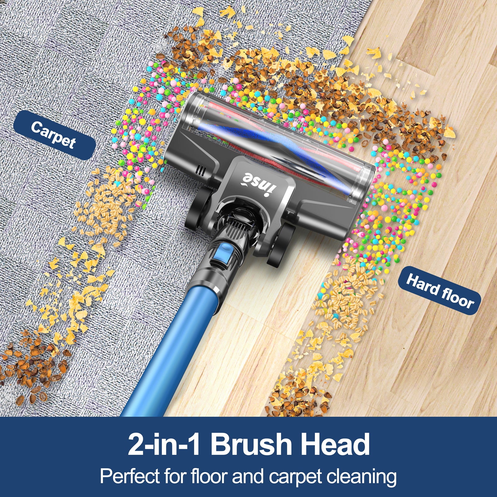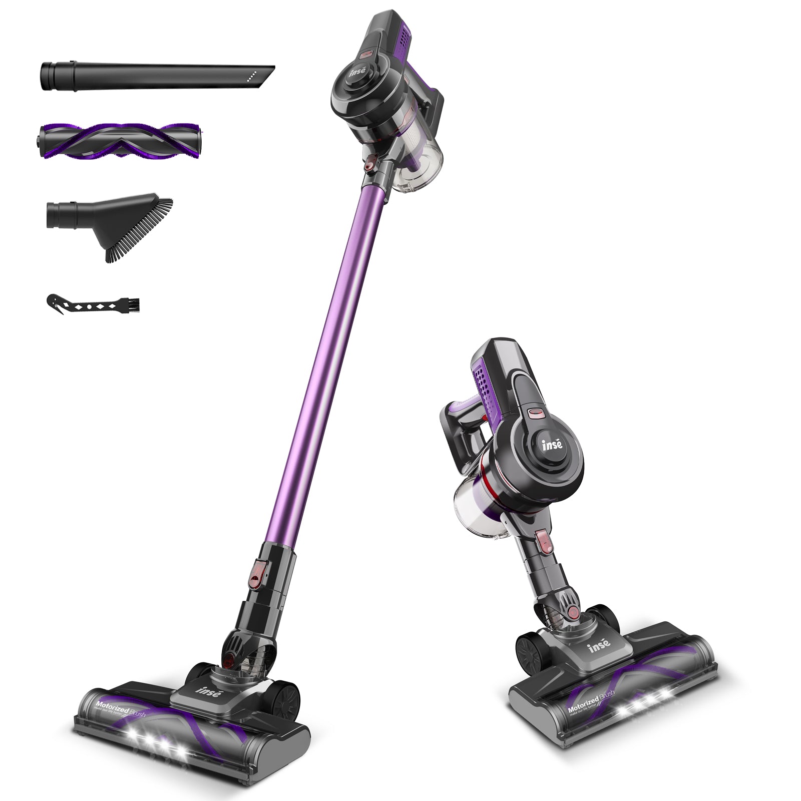 INSE N670 is a high-performance cordless vacuum cleaner that make you enjoy freedom and flexibility for whole-home cleaning.INSE N670 vacuum cleaner features 25kPa powerful suction with 175W high-efficient motor and 2200mAh large capacity rechargeable battery.It can clean pet hair, debris from variety of surfaces including hardwood floor, low and med pile carpet, tile floor, marble floor deeply and thoroughly for an effortless cleaning experience.The cordless stick vacuum also provides 45mins long-lasting running time in standard mode,3-4 hours quick charging and maintain full power for a continuous clean from start to finish.Powerful vacuum cleaner cordless equipped with rotatable and maneuverable motorized cleaner head with front LED lights easily to see the dust under furniture or in hard-to-reach conner, makes cleaning these areas an absolute breeze.